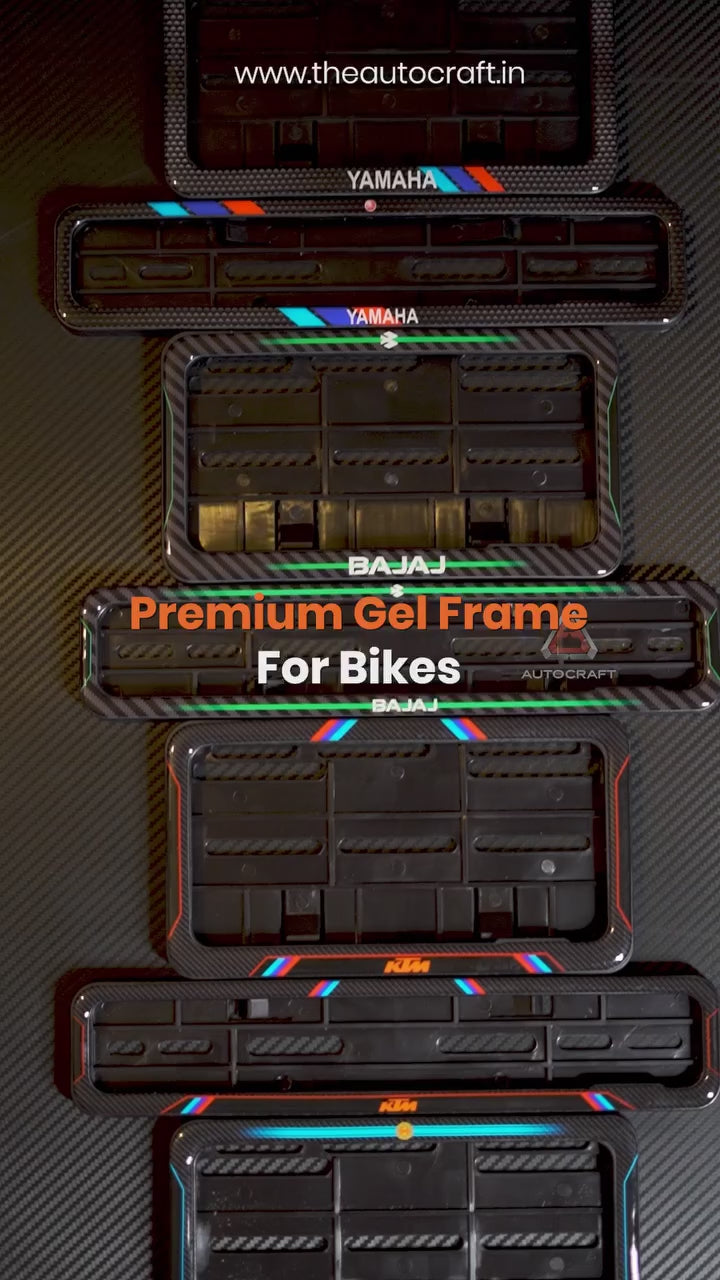 Brand-specific number plate gel frames for bikes — precision-made, premium finish, easy fit.