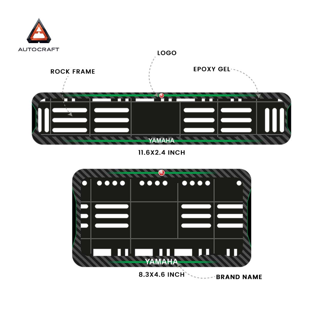 Bike Number Plate Gel Frame - Yamaha - Green Line (Front and Back Set)